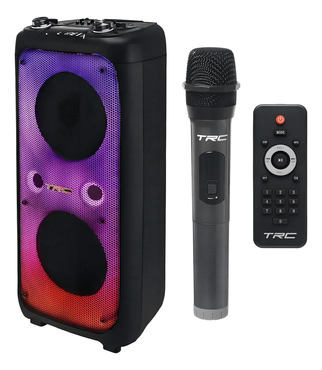 Acessórios inclusos: microfone, controle remoto e fonte bivolt.