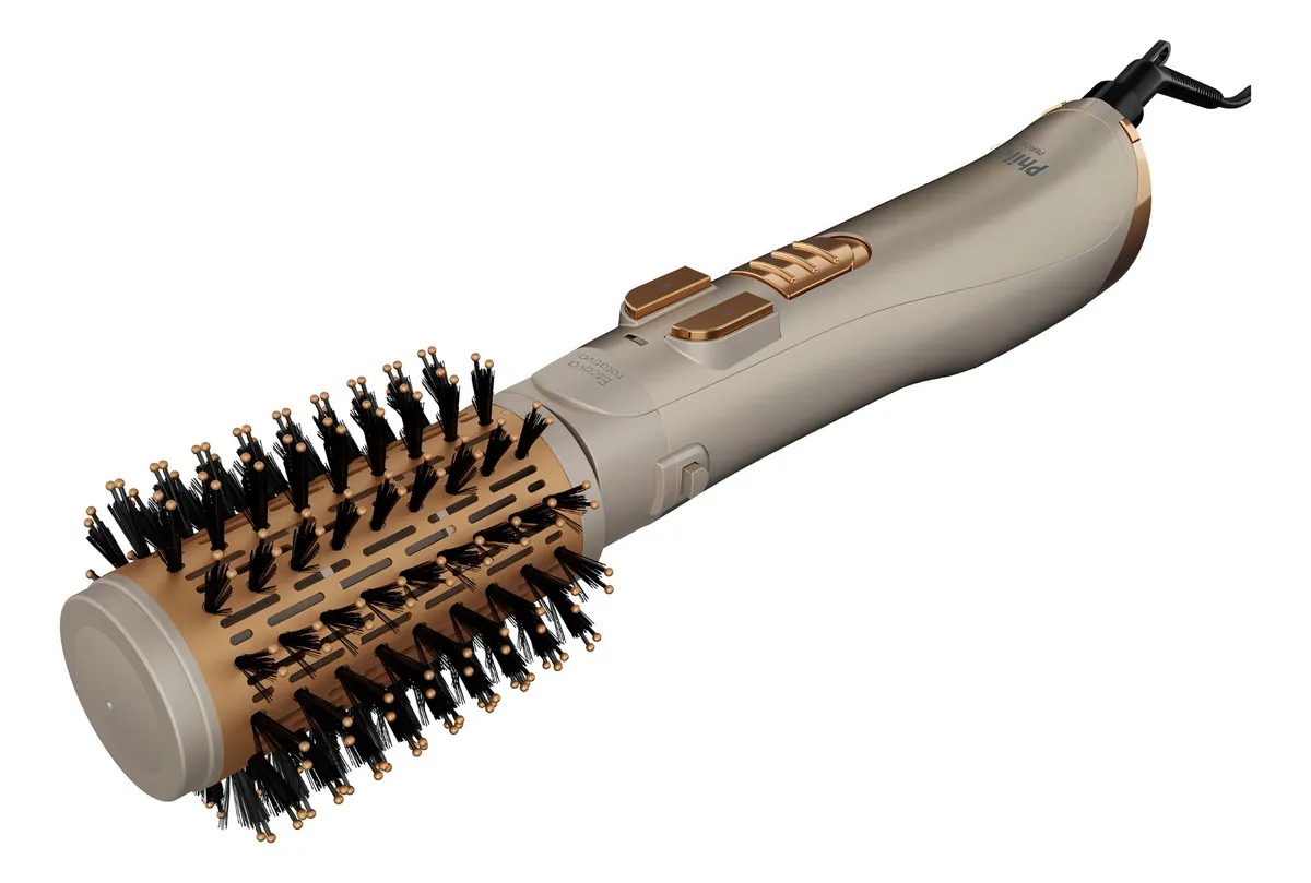 Conta com rotação em dois sentidos, cerdas ultramacias e revestimento cerâmico que protege os fios do calor excessivo.