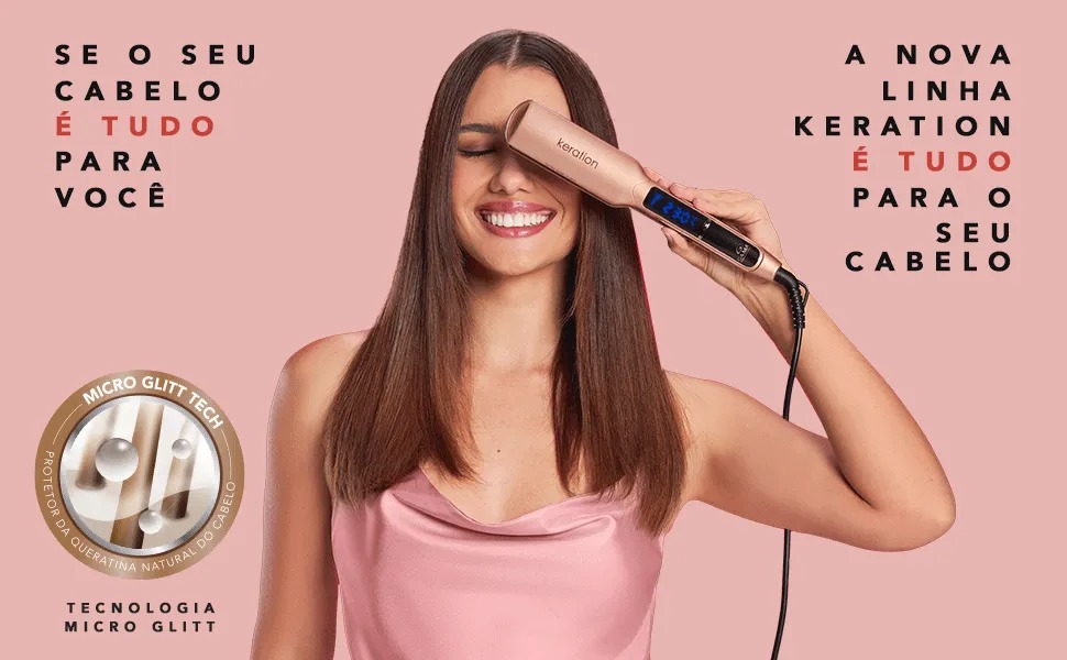Ela conta ainda com a tecnologia micro glitt que protege a queratina natural do seu cabelo evitando assim, que ela se desgaste e com revestimento de cerâmica que deixarão seu cabelo com muito mais brilho.