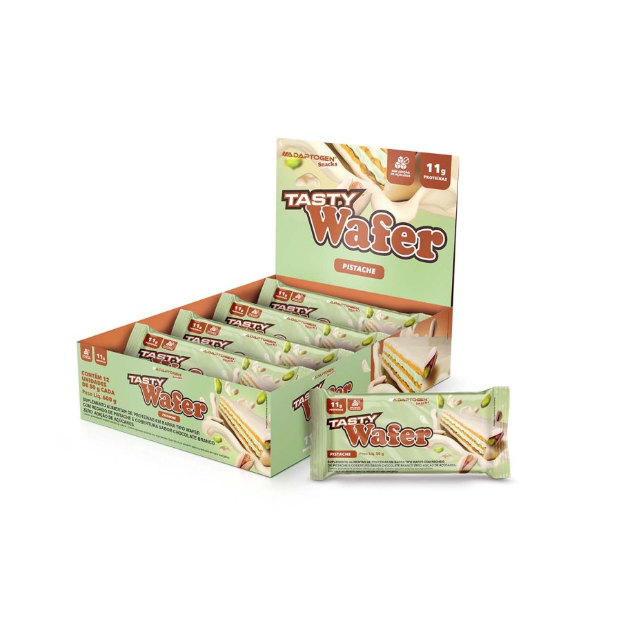 Wafer crocante com alto teor de proteína, ideal para lanche ou treino