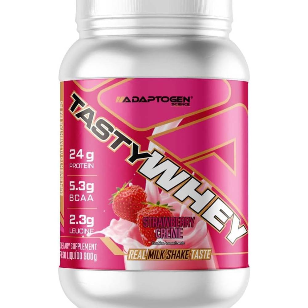 Tasty Whey (900g) - Adaptogen A premiada Tasty Whey mudou e está ainda melhor, com mais proteína e menos carboidrato, ela possui 24g de proteína, e o melhor,